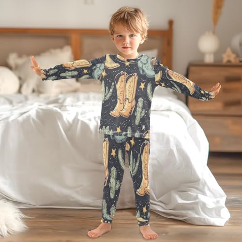 Pajama Sets Long Sleeve Cowboy Boots and Cactus Soft Comfy Sleepwear 2 Piece PJS 3-8T 2