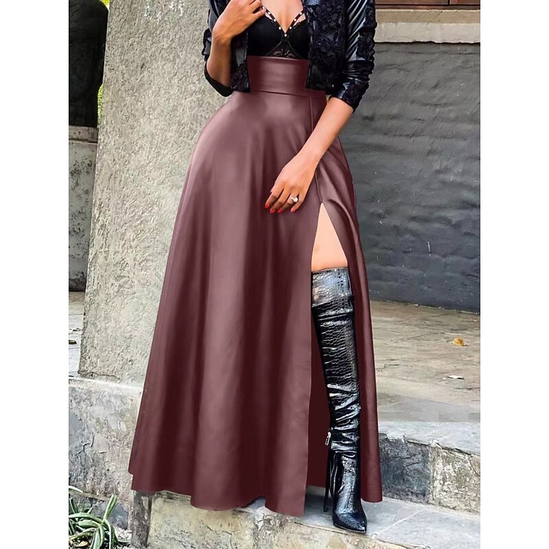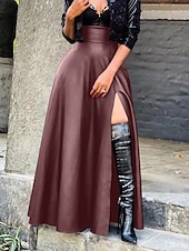 More information about Women's Skirt A Line Elegant Fashion Casual Maxi High Waist Skirts Plain Split Ends Inelastic Party Street Wine Black Pink Brown Spring Faux Leather