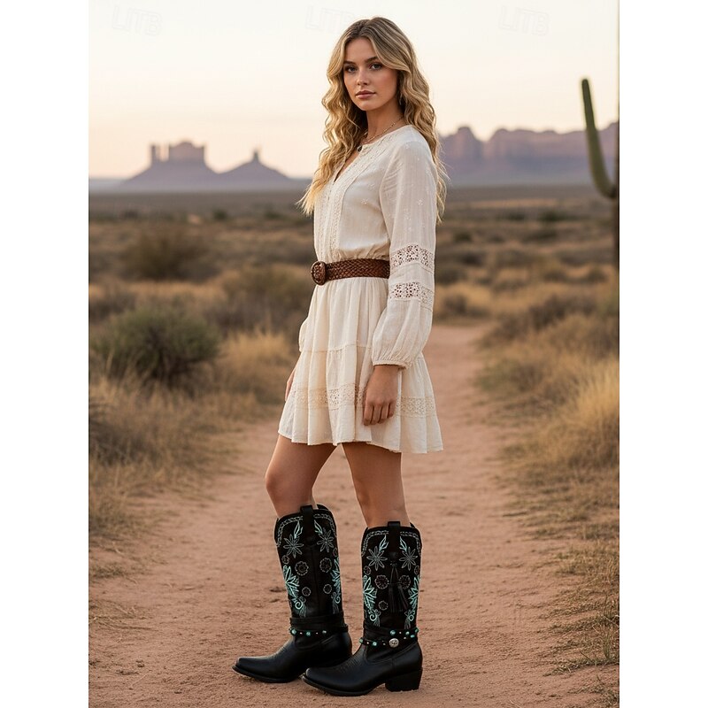 Highlights - Made with high-quality PU upper materials - Features a stylish chunky heel and pointed toe design - Offers a comfortable synthetic leather and textile lining - Durable rubber outsole for long-lasting wear - Stay ahead of the trend with these stylish cowboy boots - Elevate your look with these fashionable and trendy boots for 2025