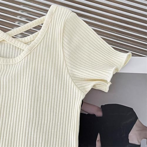 Kids Girls Ruffle Sleeve Shirts Ribbed Knit Cute Tops Crew Neck Summer T Shirts Outdoor Casual Playground 6