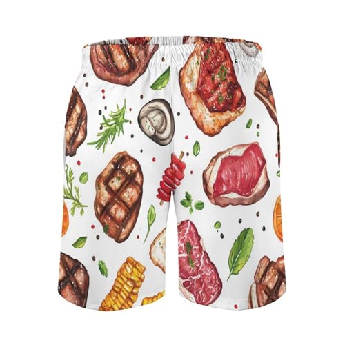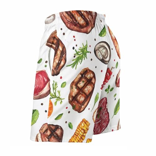 Meat Food and Barbecue Men's Swim Trunks Board Shorts Beachshorts Swimsuits with Pockets Mesh Liner 1