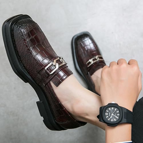 Men's Leather Chunky Dress Loafers Classic Crocodile Printed Business Platform Slip on Penny Loafer Comfortable Office Work Shoes 6