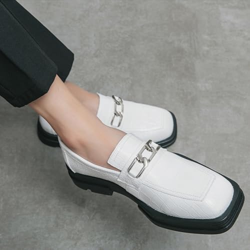 Men's Leather Chunky Dress Loafers Classic Crocodile Printed Business Platform Slip on Penny Loafer Comfortable Office Work Shoes 7