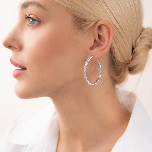 RANKEEF Large Twisted Hoop Earrings for Women with Shiny Cubic Zirconia Hypoallergenic 925 Silver Post Forever Love Hoops Trendy 3D Laser-Cut Sturdy Lightweight Big Twisted Gold Hoops 5