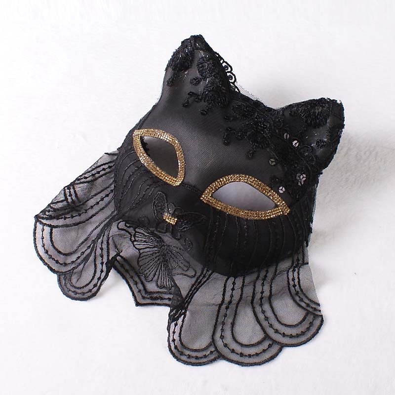 Venice Carnival Cat Mask Black Masquerade Graduation Party Accessories Women Elegant Halloween Cosplay Masks 22