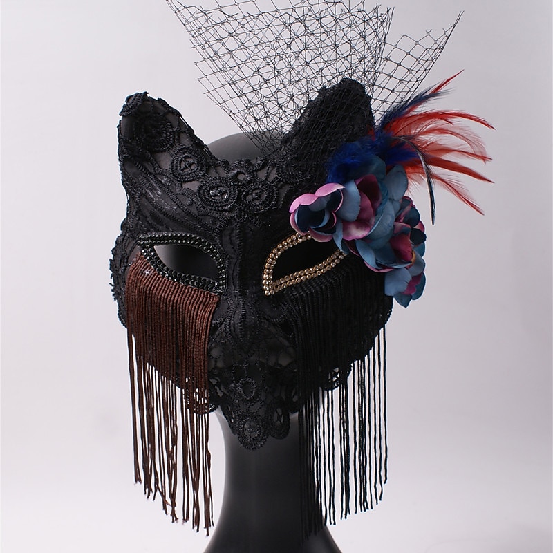 Venice Carnival Cat Mask Black Masquerade Graduation Party Accessories Women Elegant Halloween Cosplay Masks 18