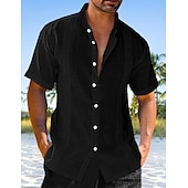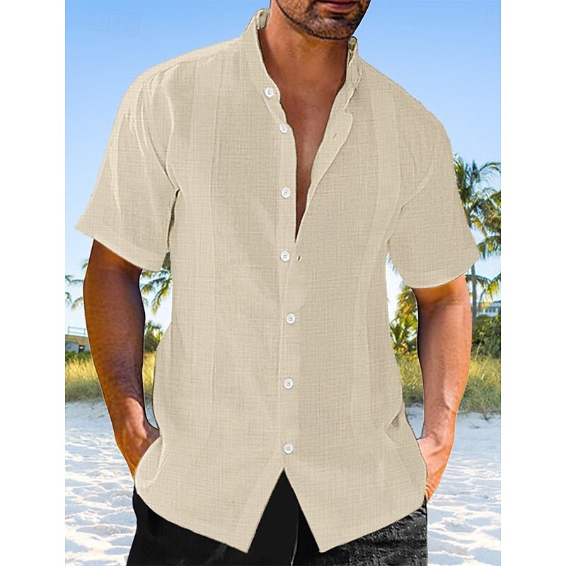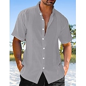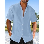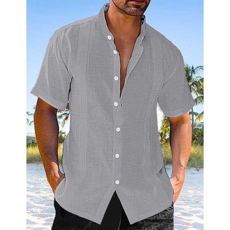 More information about Men's Linen Shirt Guayabera Shirt Band Collar Shirt Summer Shirt Beach Wear Casual Shirt Plain Vacation Curise Black White Blue Green Short Sleeve Stand Collar Summer Clothing Apparel