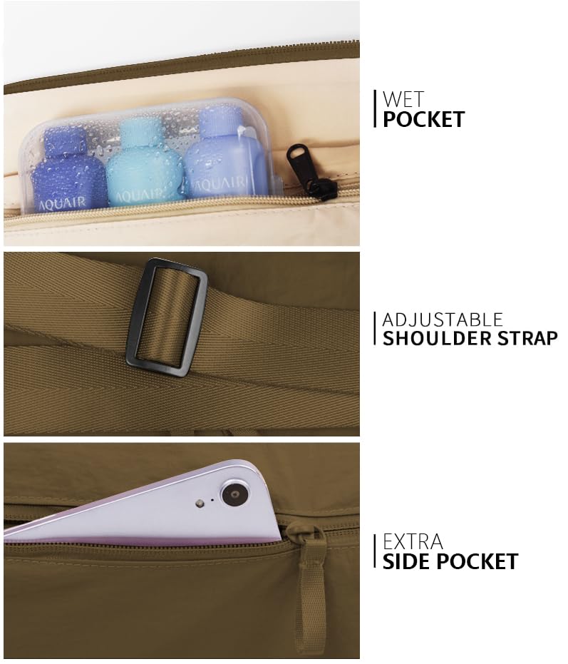• Wet/Dry Separation Pocket: Maintain hygiene and organization with the wet and dry separation pocket in our gym bag. This compartment allows you to store damp gym clothes separately from dry items, keeping everything clean and fresh throughout your day.