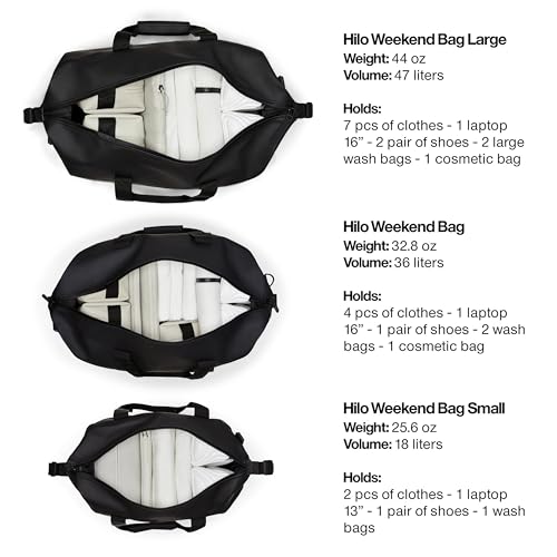 HOT ! RAINS Hilo Weekend Bag Small - Black Waterproof Travel Duffel for Men and Women - Compact Black Duffle with Coated Zip, Adjustable Strap, Compression Straps - 2 Year Warranty