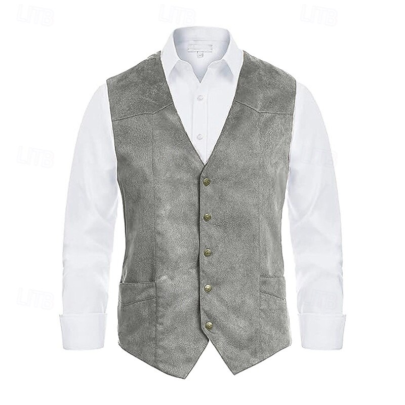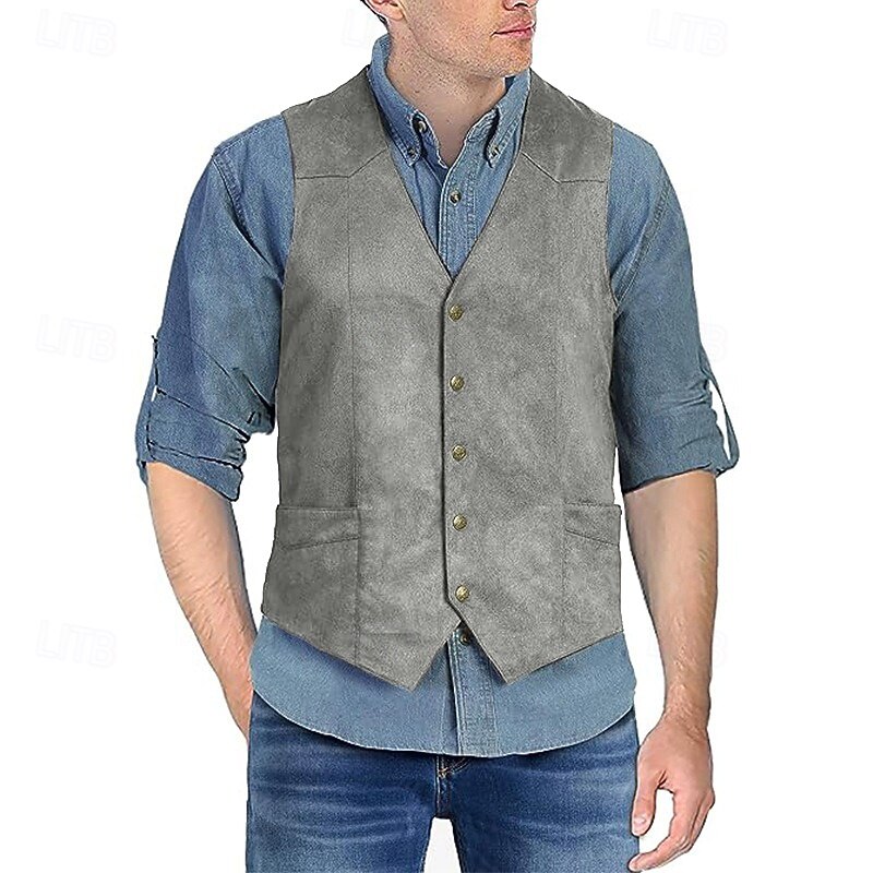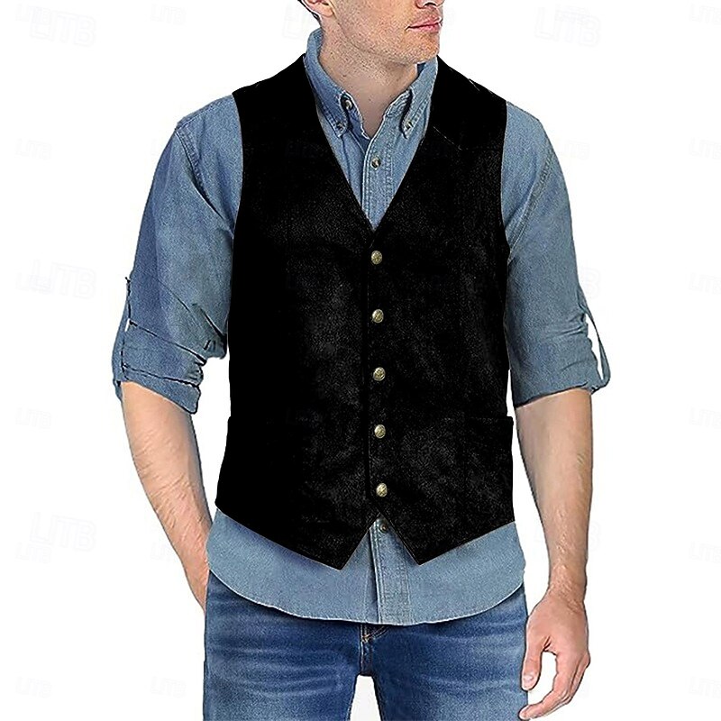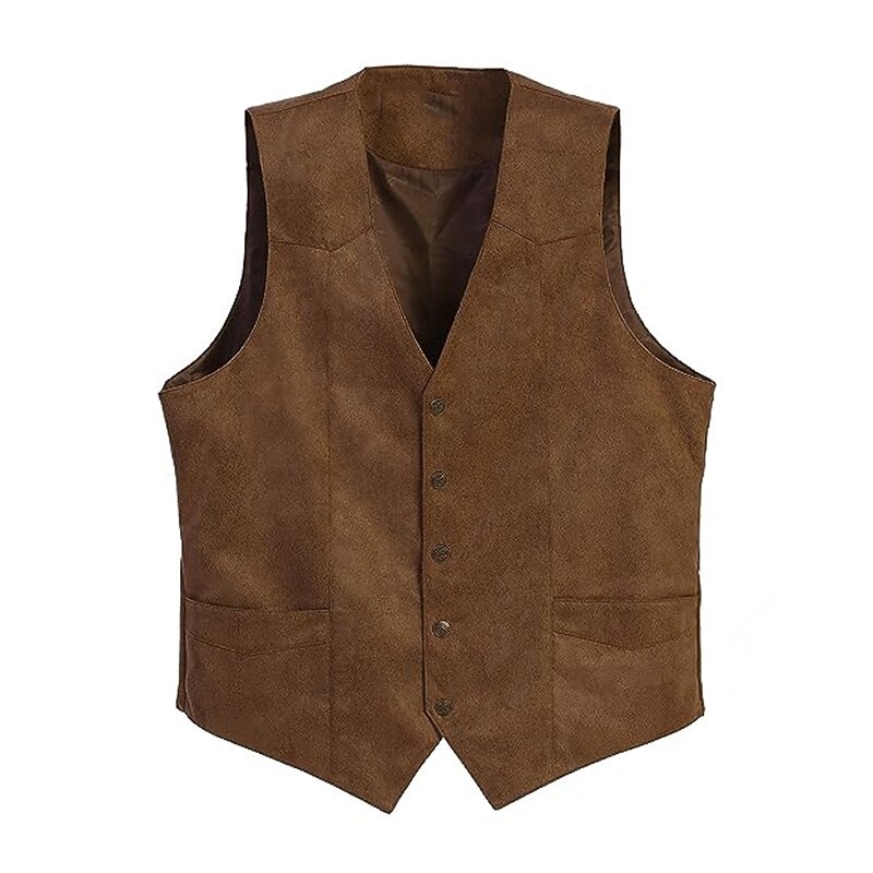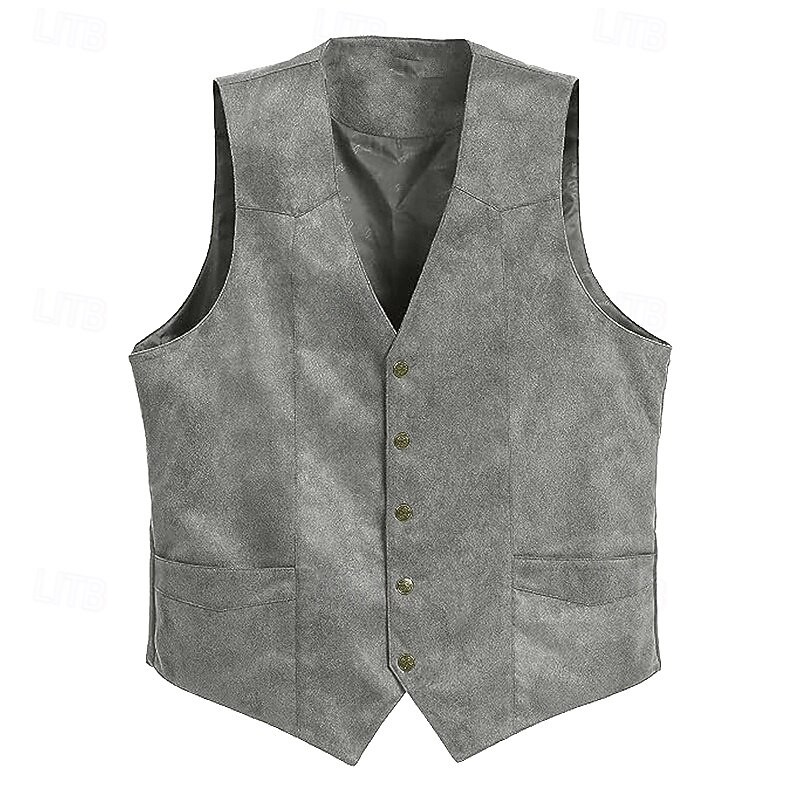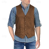 More information about Men's Suede Vest Daily Wear Vacation Going out Vintage Style Chic & Modern Spring & Fall Button Polyester Comfortable Plain Single Breasted V Neck Regular Fit Black Brown Coffee Gray Vest