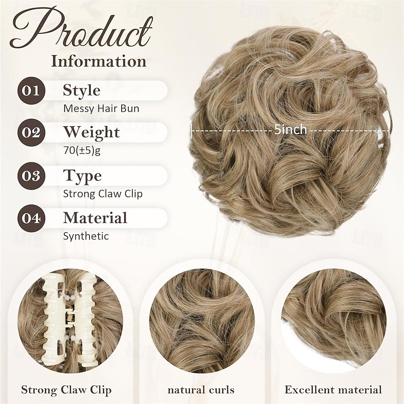 More information about Messy Hair Bun Extensions Wavy Curly Claw Clip Messy Bun Hair Pieces Blonde Highlights Messy Bun Extension Clip in Claw Chignon Synthetic Hair Buns for Woman