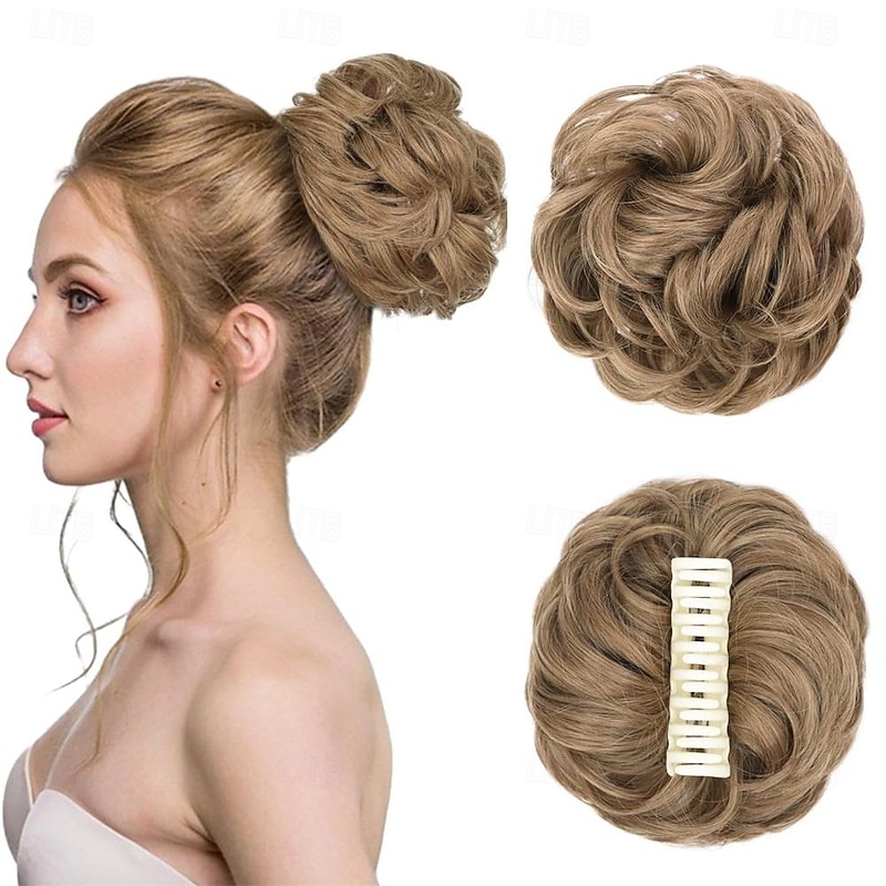Messy Hair Bun Extensions Wavy Curly Claw Clip Messy Bun Hair Pieces Blonde Highlights Messy Bun Extension Clip in Claw Chignon Synthetic Hair Buns for Woman 9