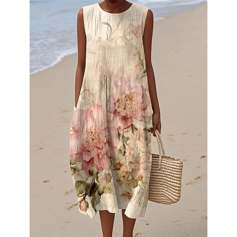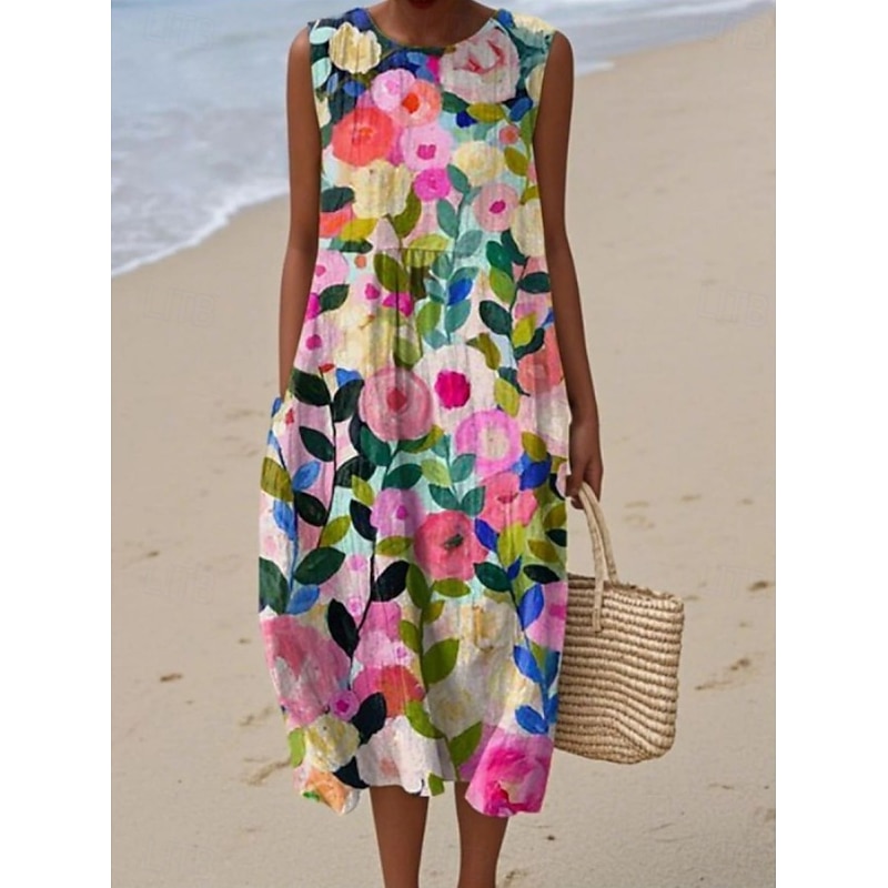 More information about Women's Midi Dress Sundress Shift Dress A Line Dress Vacation Casual Boho Party Going out Beach Loose Fit Floral Graphic Sleeveless Crewneck Light Blue White / Purple Pink Blue Summer Spring