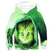 HOT ! Kids 3D Print Cat Hoodie Long Sleeve Animal Green Blue Purple Children Tops Fall Winter Active Streetwear Daily Indoor 2-13 Years