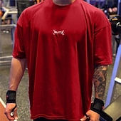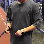 HOT ! Men's Dark Grey Oversized Gym T-shirt BUTZ Graphic Fitness Short Sleeve