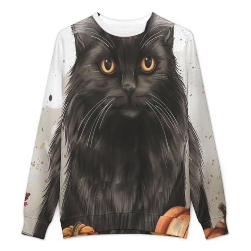 HOT ! Fall Tuxedo Cat Crewneck Sweater Men Funny Crew Neck Sweater Long Sleeve Casual Lightweight Pullover