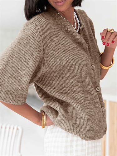 • Feature: Women open front cardigans blend vintage classic button front and retro solid color with short sleeve and loose fit design to make a perfect casual streetwear outfit. The clean fit classy summer spring fall cardigan better shows your charm and femininity.