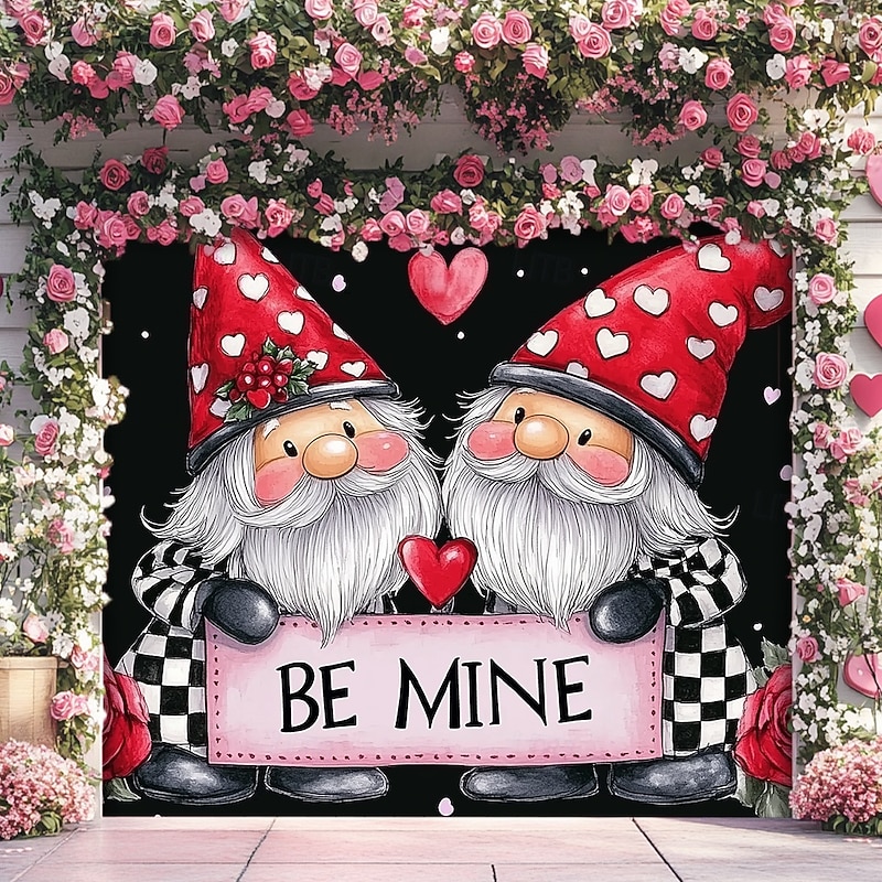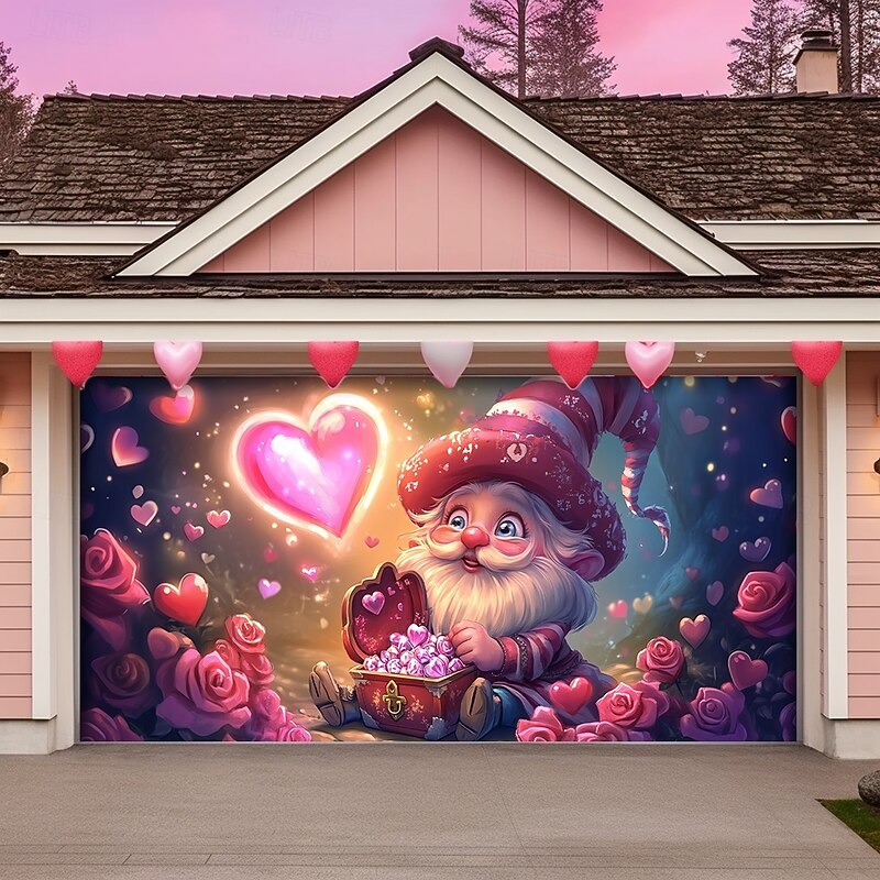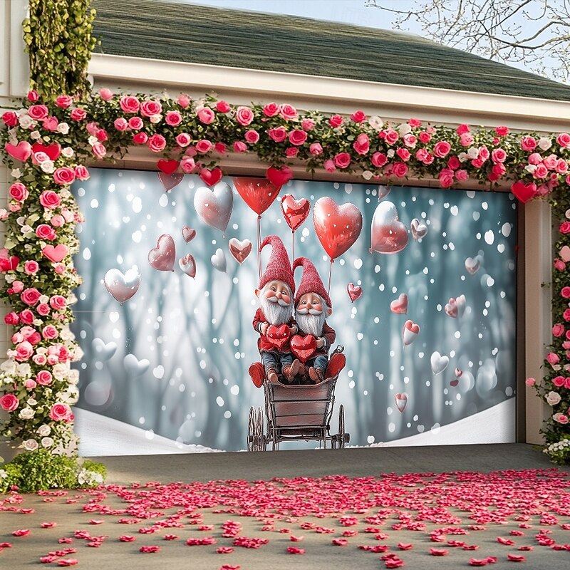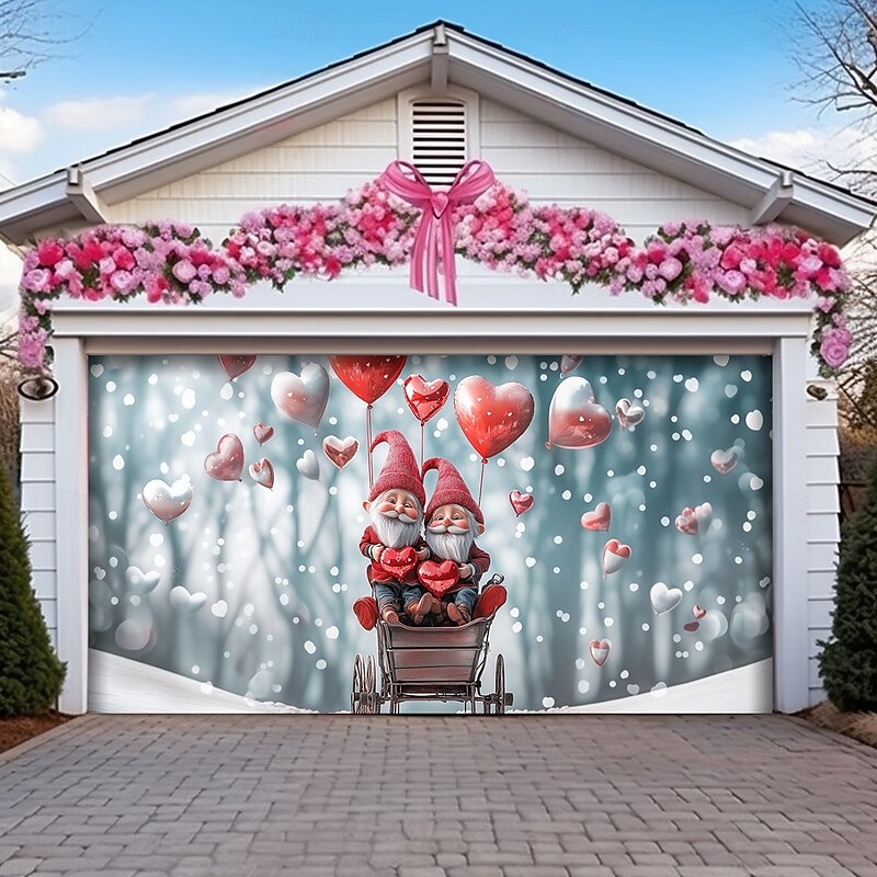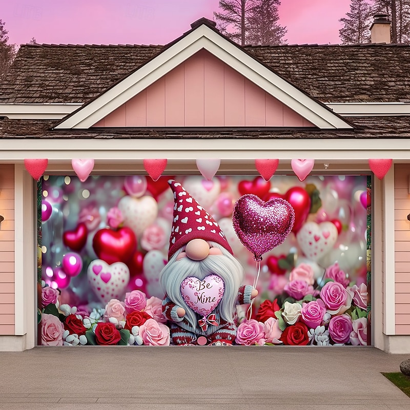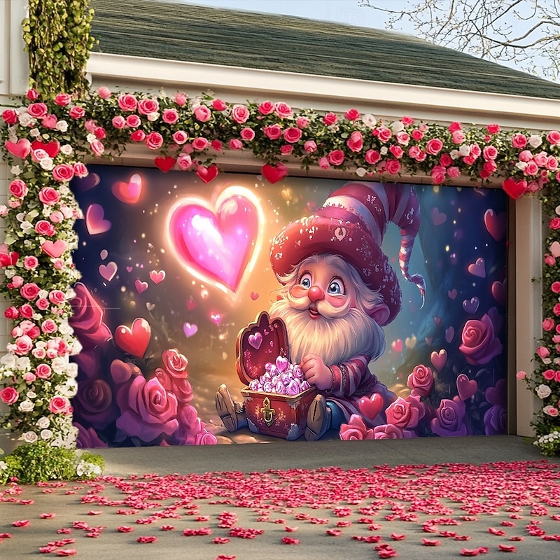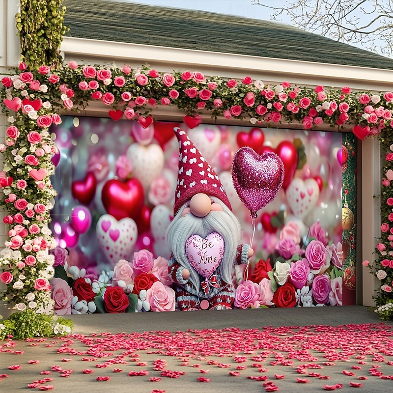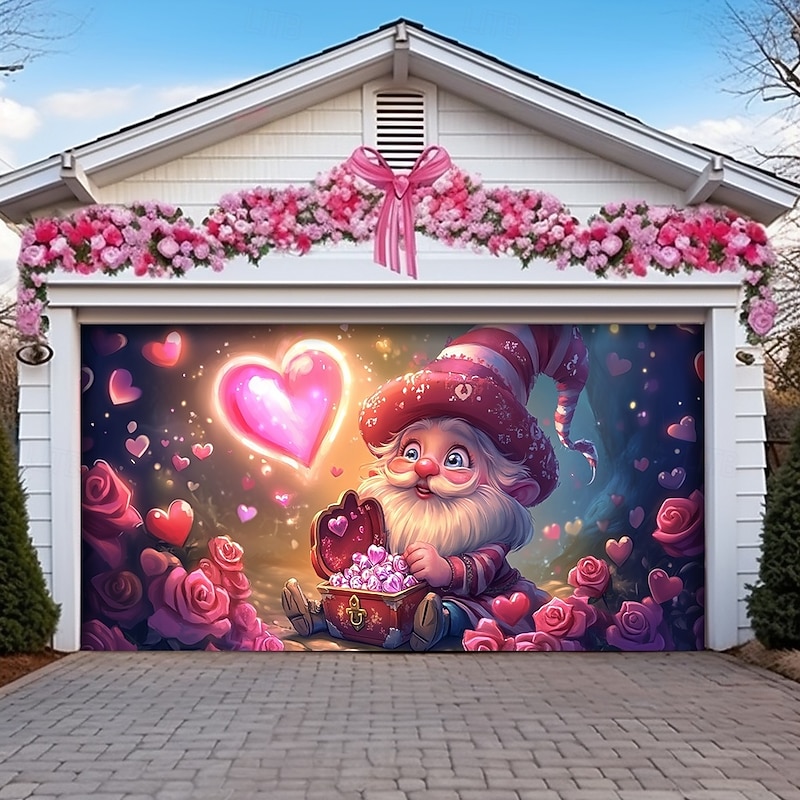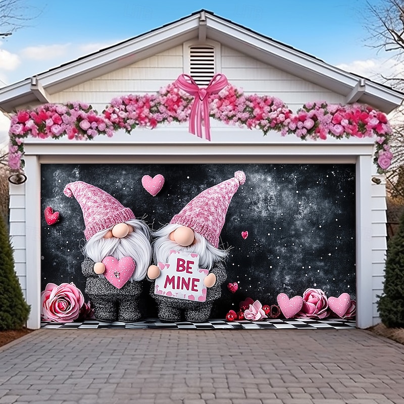 Highlights [Fabric and Materials] This striking garage door cover banner is made from high-quality, weather-resistant polyester fabric, designed to withstand various outdoor conditions. The material is lightweight yet sturdy, ensuring ease of installation and durability over time. [Design and Pattern] Featuring a delightful 3D print, the banner showcases two adorable gnomes adorned with red hats, complete with heart patterns, symbolizing love and affection. The design is further enriched by bold, colorful roses on either side, bringing a touch of nature and elegance to your outdoor space. [Key Design Features] The banner is printed with vibrant, fade-resistant inks, ensuring that the colors remain brilliant over time. Additionally, the text "BE MINE" is prominently displayed, conveying a warm, loving message to all who see it. [Occasions for Use] Ideal for Valentine's Day celebrations, romantic events, or any occasion where you want to express love and warmth. This versatile decoration enhances the beauty of your home’s exterior and adds charm to parties, parades, and other festive gatherings. [Size Information] The garage door cover banner is available in a size of 400 cm by 180 cm, making it suitable for most standard garage doors, ensuring it effectively covers and transforms your outdoor space with its vibrant design.