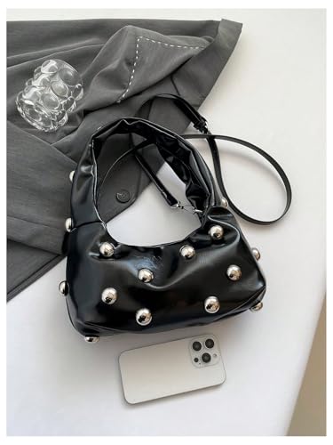 HOT ! Verdusa Women's Studded Leather Shoulder Handbags Y2k Punk Top Handle Crescent Crossbody Bags