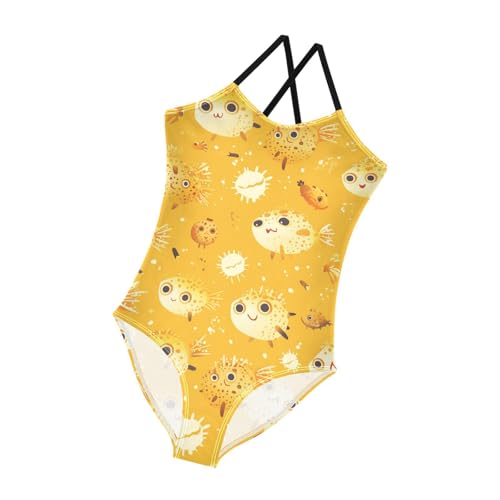 KLL Cute Cartoon Puffer Fishs Girl 1 Piece Swimsuit Summer Swimming Suits with Adjustable Straps UPF 50+ 1