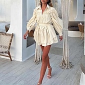 More information about Women's Mini Dress T Shirt Dress Tee Dress Vacation Party Birthday Party Cocktail Party Going out Regular Fit Solid Color Long Sleeve Turndown Apricot Summer Spring Fall