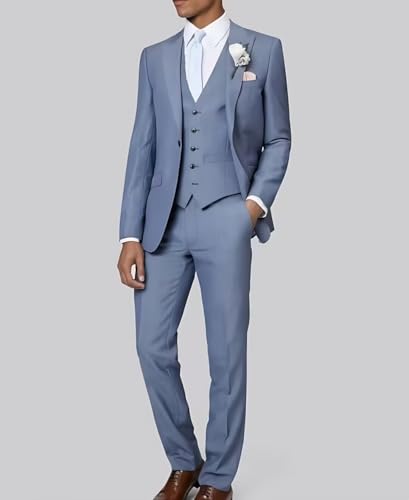 More information about HUUTOE Mens 3 Piece Suits Slim Fit Peak Lapel One Button Blazer Wedding Business Prom Suit Jacket Vest and Pants Tuxedo Set