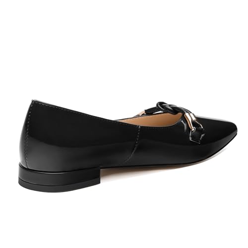 WAYDERNS Heels for Women Pointed Toe Comfortable Low Heel Patent Leather 1 Inch Flats Pumps Office Work Dating Slip on Dress Shoes 5