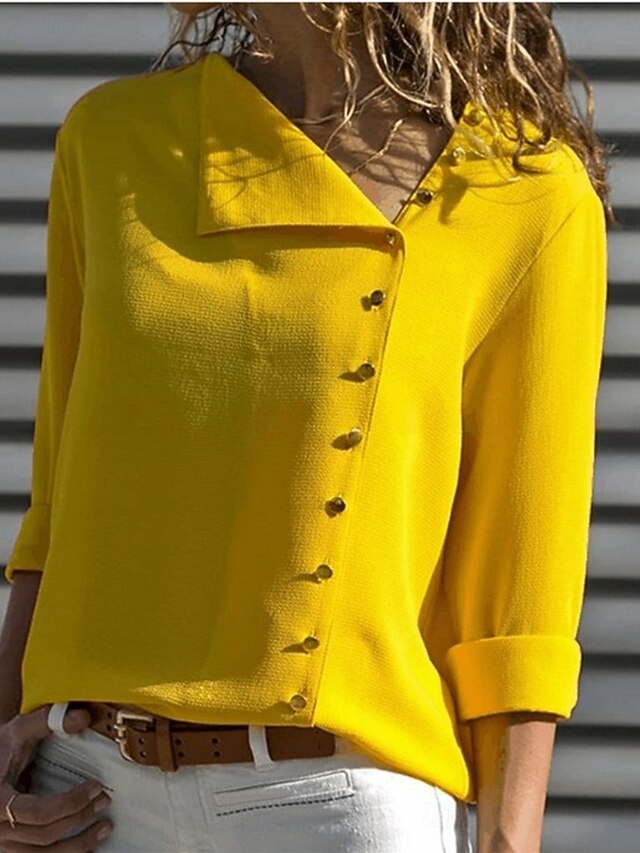 More information about Women's Shirt Solid Color Stylish Casual Long Sleeve Shirt Collar Regular Tops Daily Buttons Black White Yellow Pink Summer Spring