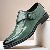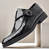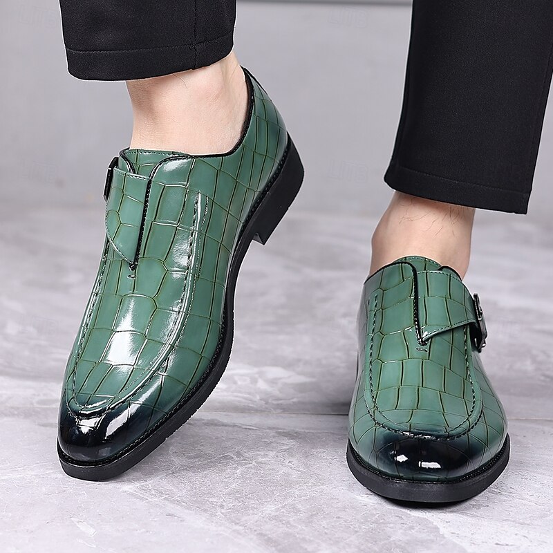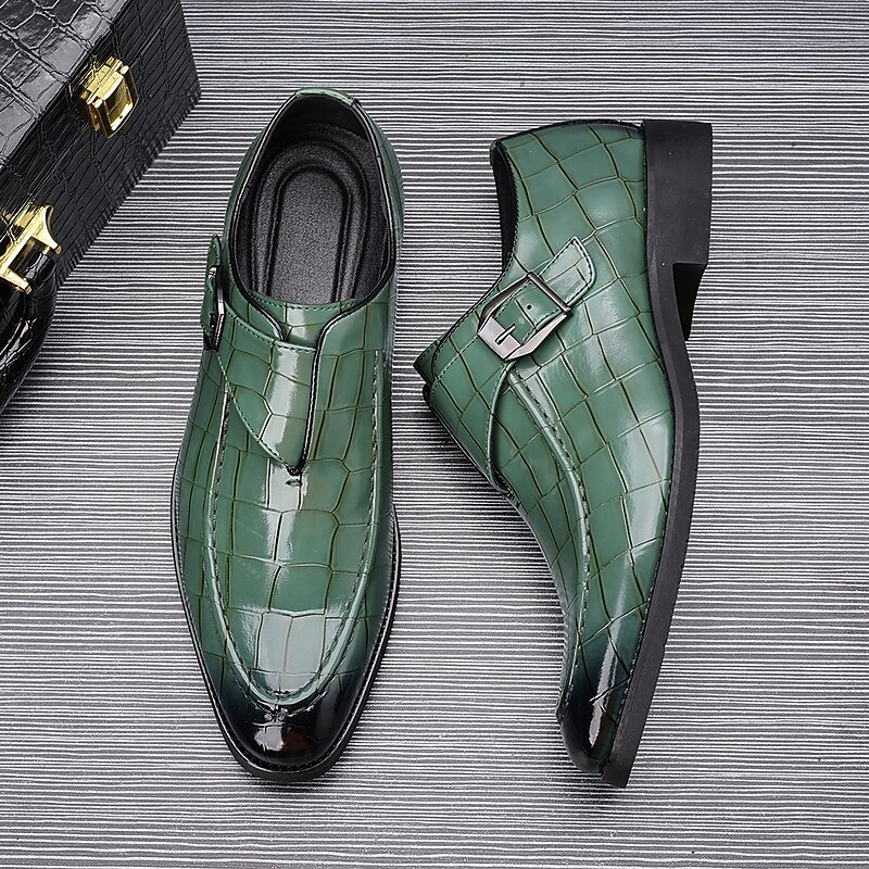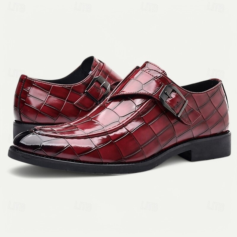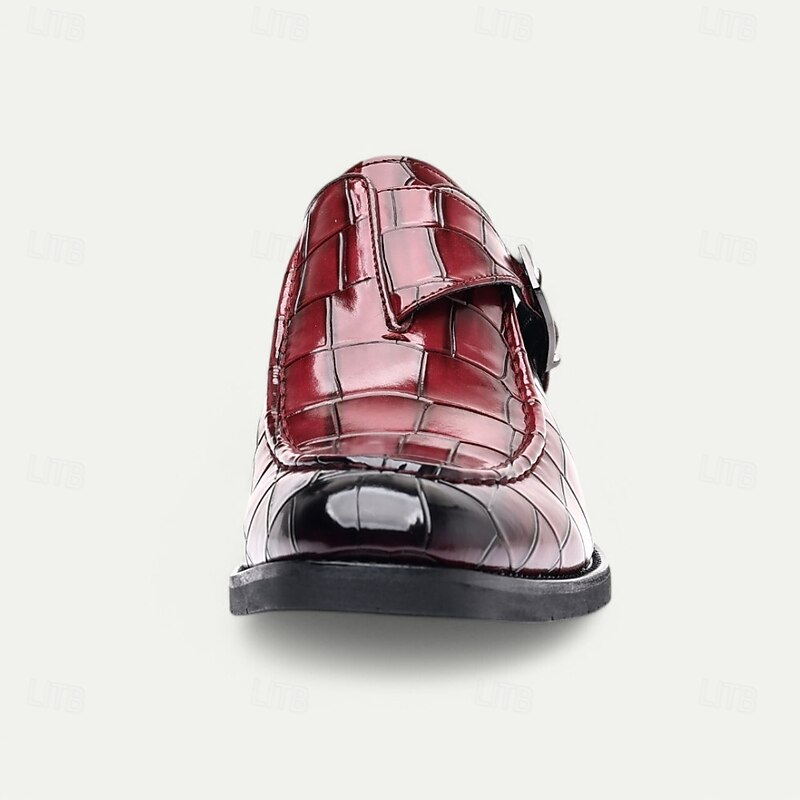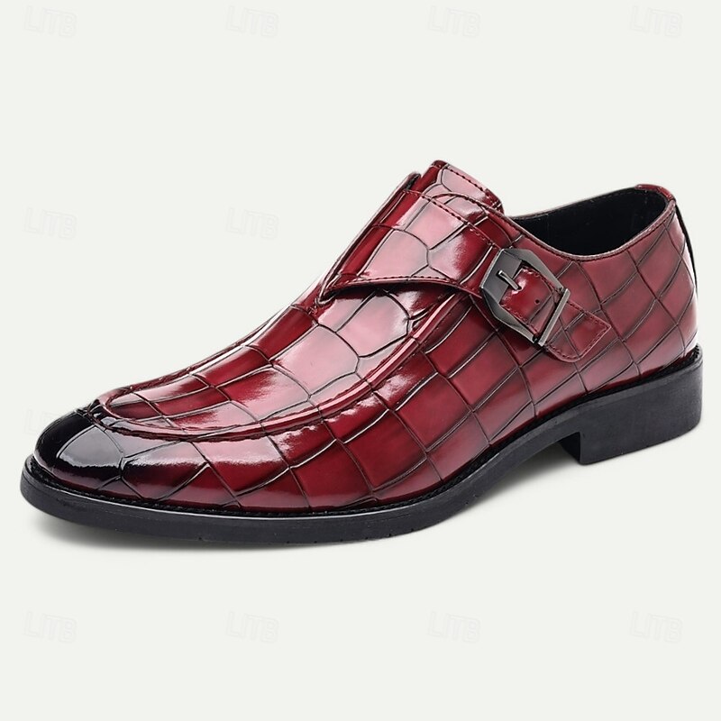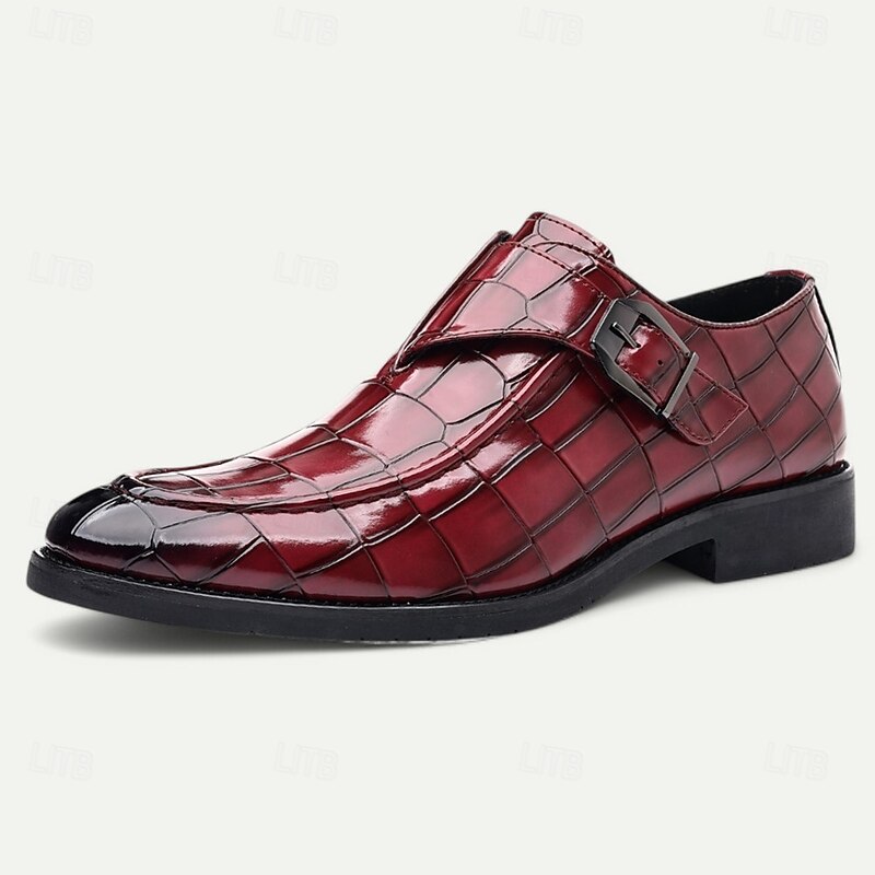 Men's Burgundy Crocodile Pattern Faux Leather Dress Shoes with Buckle, Elegant Footwear for Formal & Business Occasions 35