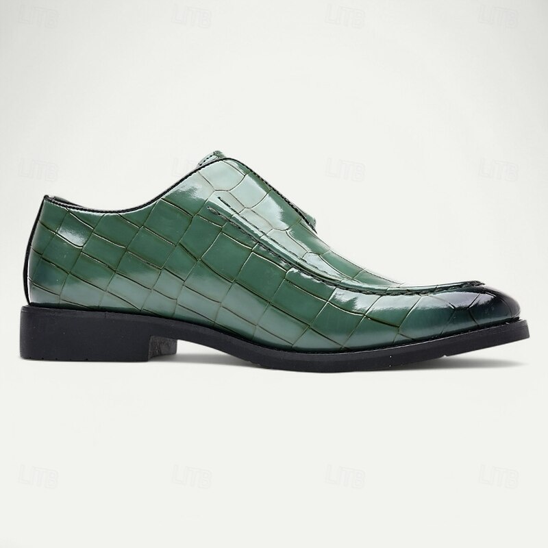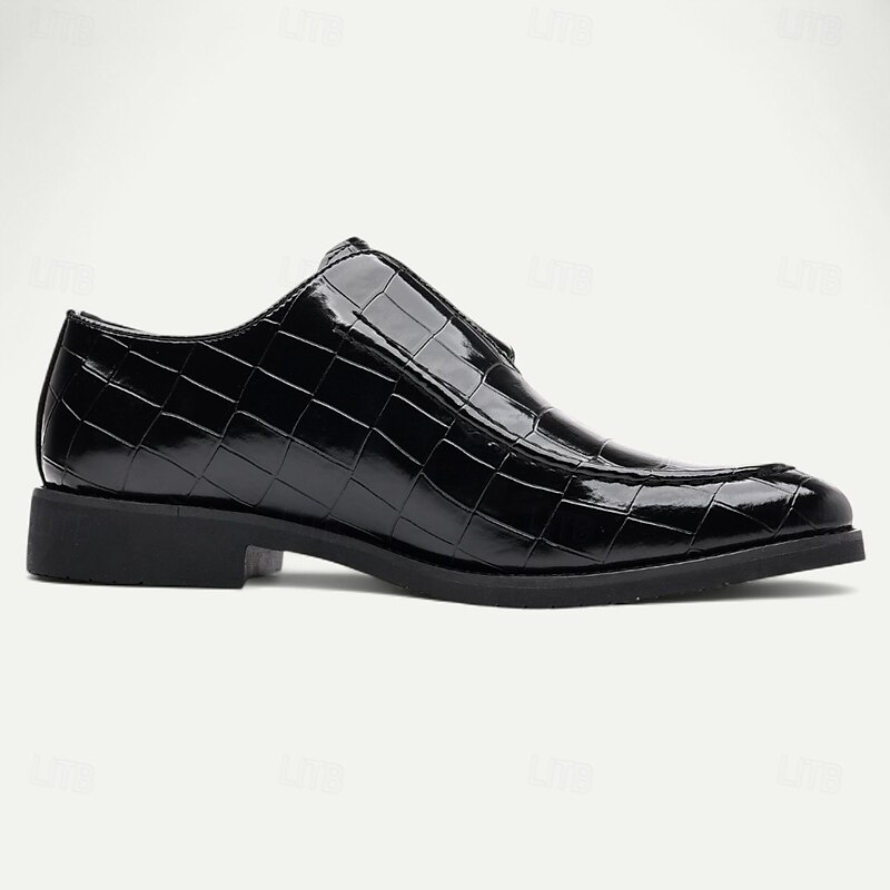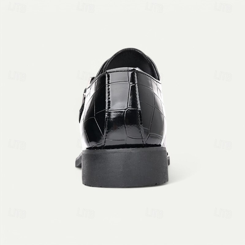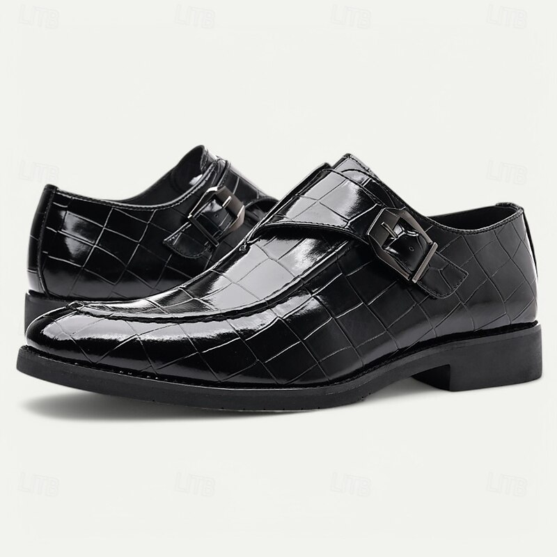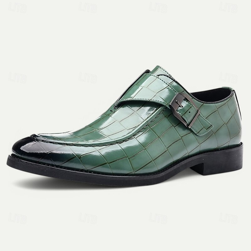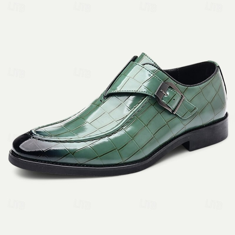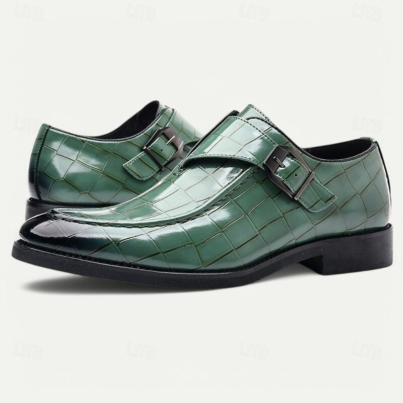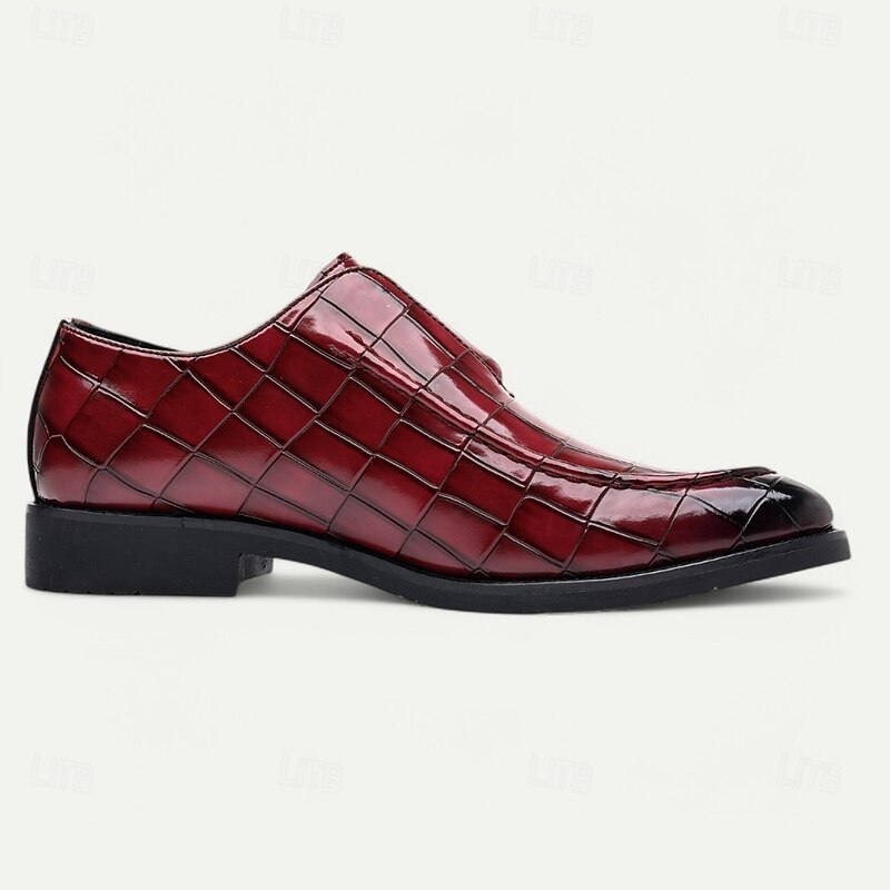 Men's Burgundy Crocodile Pattern Faux Leather Dress Shoes with Buckle, Elegant Footwear for Formal & Business Occasions 37