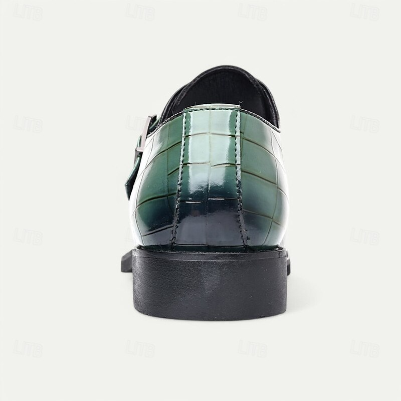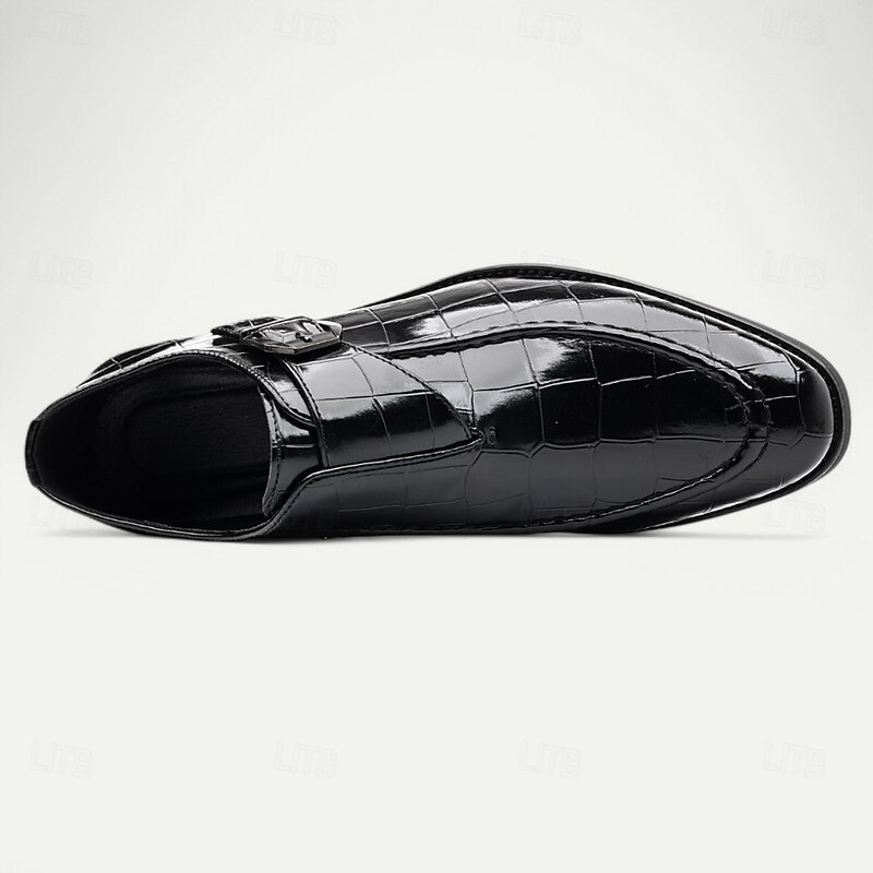 Men's Burgundy Crocodile Pattern Faux Leather Dress Shoes with Buckle, Elegant Footwear for Formal & Business Occasions 4