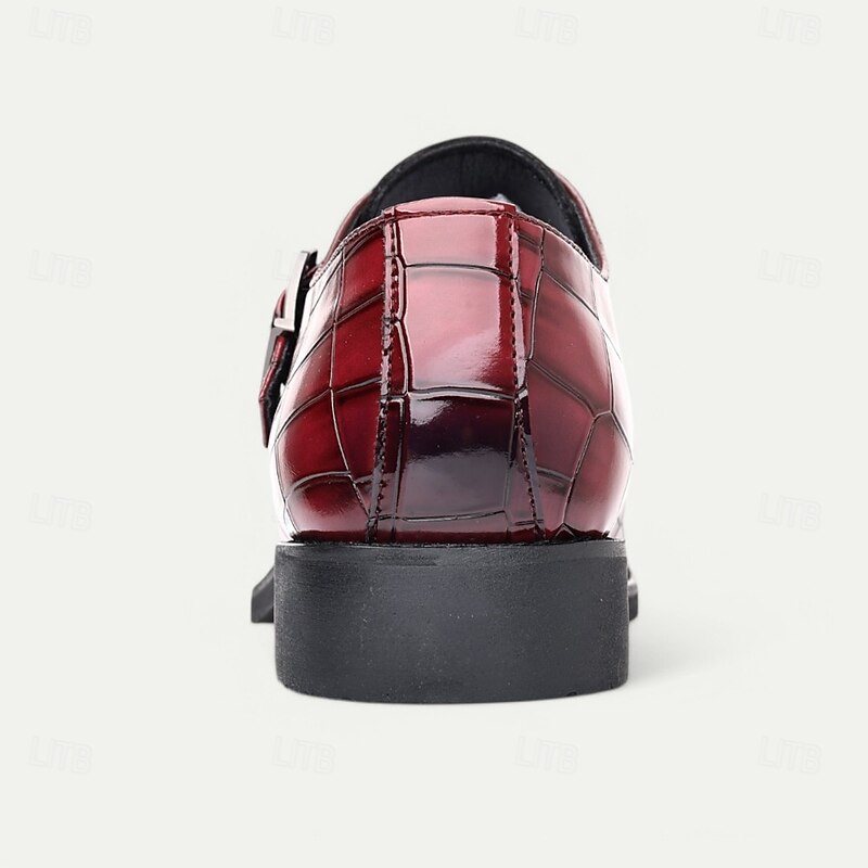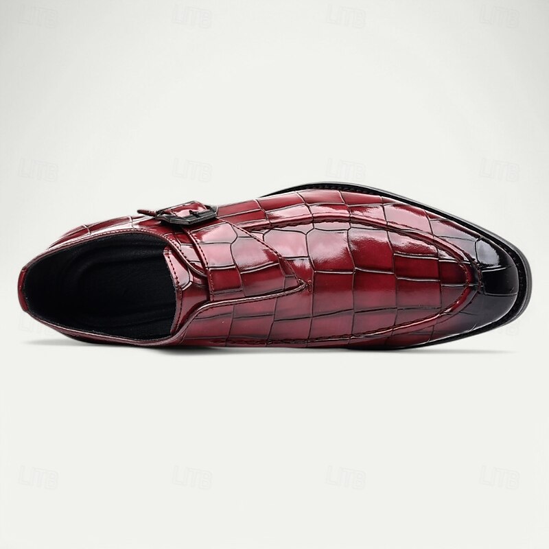 Men's Burgundy Crocodile Pattern Faux Leather Dress Shoes with Buckle, Elegant Footwear for Formal & Business Occasions 32