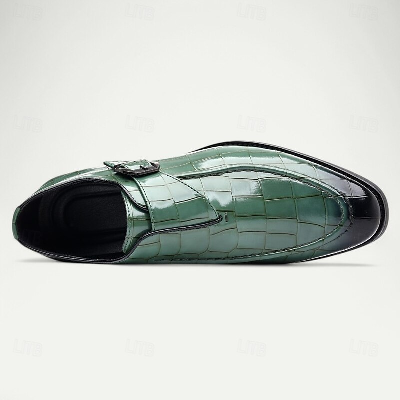 Men's Burgundy Crocodile Pattern Faux Leather Dress Shoes with Buckle, Elegant Footwear for Formal & Business Occasions 25