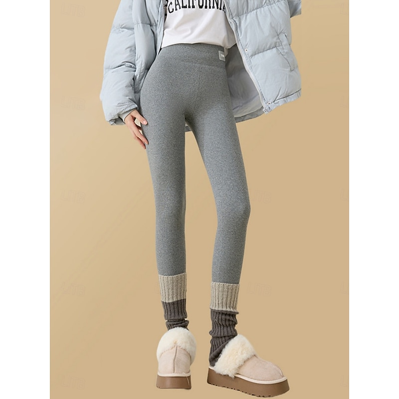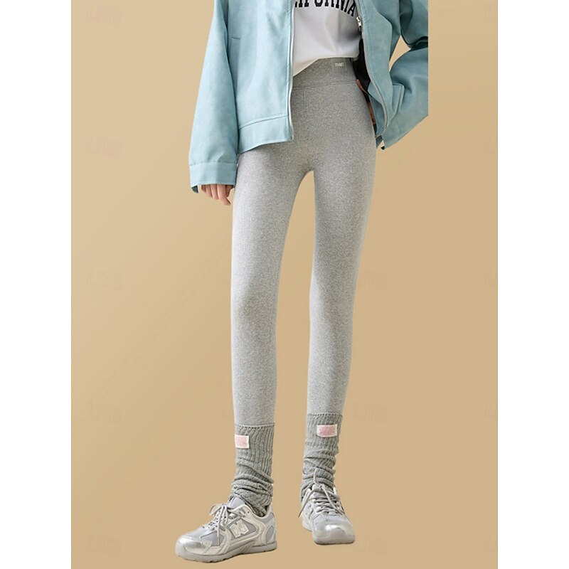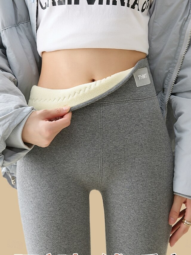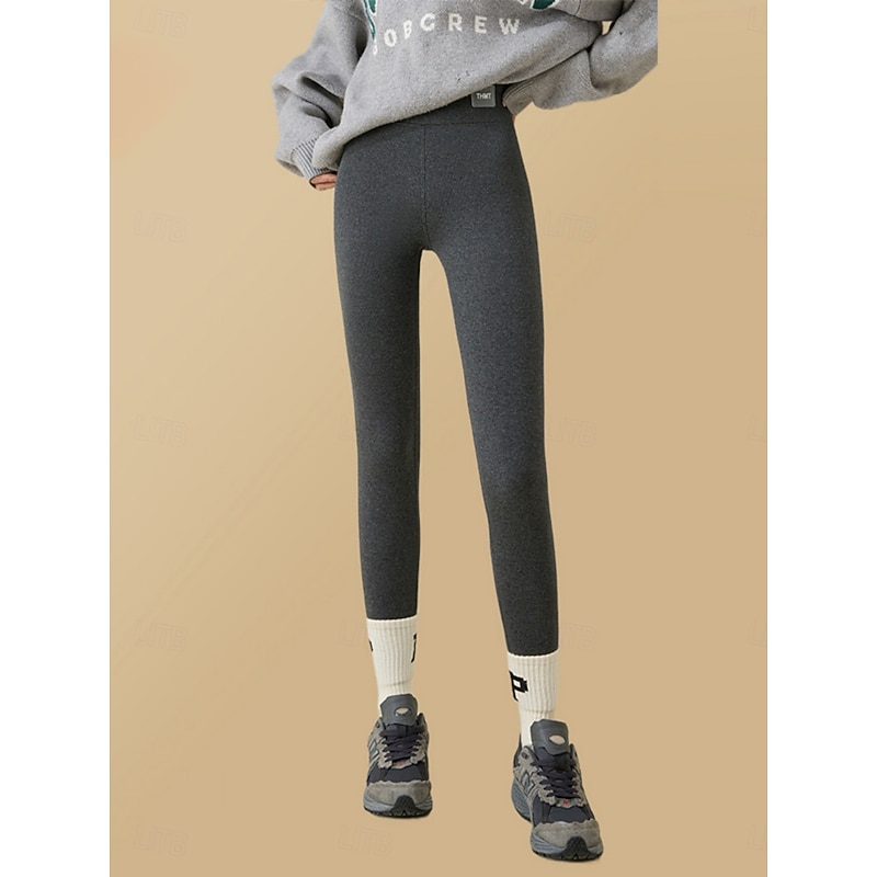 More information about Women's Fleece Pants Leggings Fashion Basic Casual Full Length High Waist Plain High Cut Comfy Soft Comfortable Stretchy Home Daily Light Gray Dark-Gray Black Beige Summer Spring Fall Winter Slim Fit