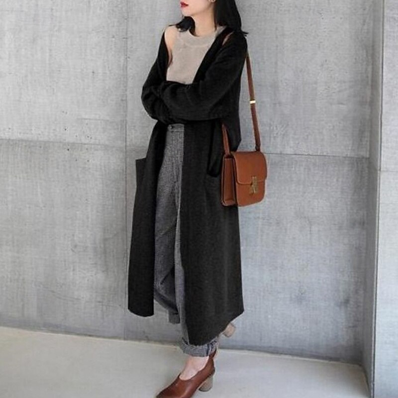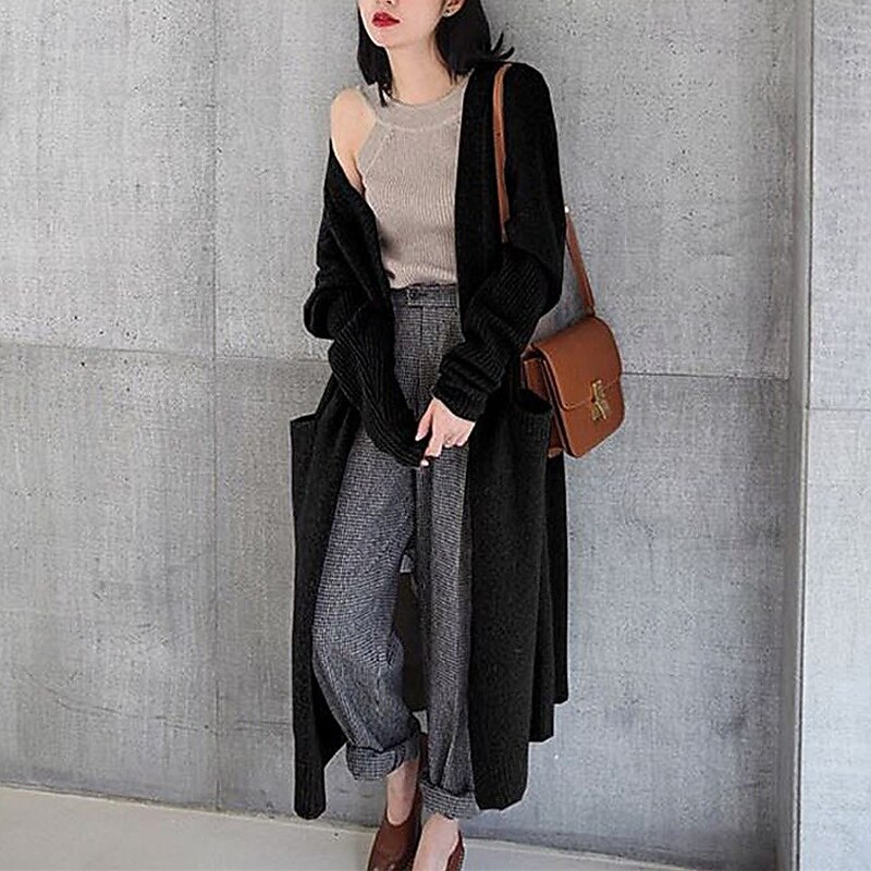 More information about Women's Sweater Cardigan Fashion Streetwear Daily Solid Color Ribbed Open Front Knitted Long Sleeve Long Tops Knit Holiday Going out Weekend Black Camel Fall Winter