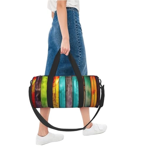 Travel Duffel Bag Lightweight Carry On Weekender Overnight Bags Colorful Wooden Boards Sports Tote Gym Backpack with Adjustable Strap Hospital Bags Foldable Luggage Bag for Women Men 5