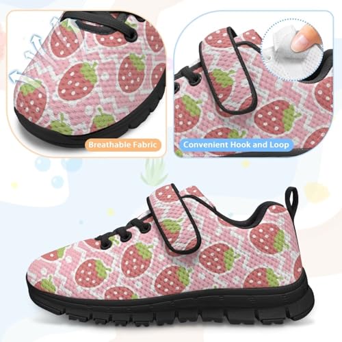 Kids Running Shoes Walking Sports Athletic Tennis Sneakers for Boys Girls Strawberry Pattern(Black Sole) 1