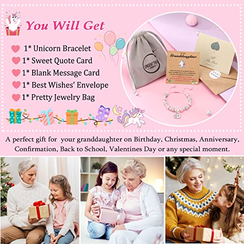 HOT ! Unicorn Bracelet for Daughter/Granddaughter/Granddaughter/Bonus Daughter Adjustable Pink & White Pear Bracelet, Birthday Christmas Graduation Gifts for Girls