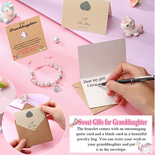 Unicorn Bracelet for Daughter/Granddaughter/Granddaughter/Bonus Daughter Adjustable Pink & White Pear Bracelet, Birthday Christmas Graduation Gifts for Girls 4