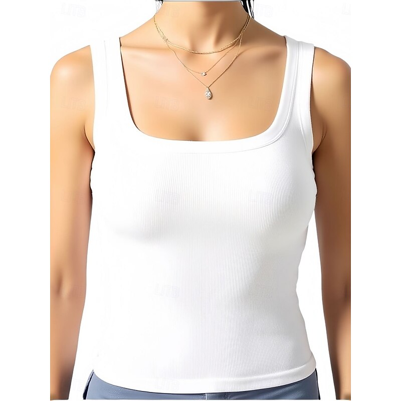 More information about Women's Camisole Tank Top Solid Color Daily Stylish Casual Sleeveless Scoop Neck Regular Tops Daily Black White Pink Army Green Blue Summer