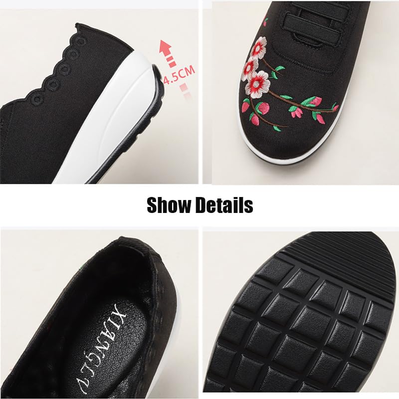 Women's Floral Embroidery Platform Wedge Walking Sneakers Fashion Fitness Mesh Up Stretch Slip On Arch Support Orthopedic Running Shoe Casual Breathable Wedge Rocker Shoe 4