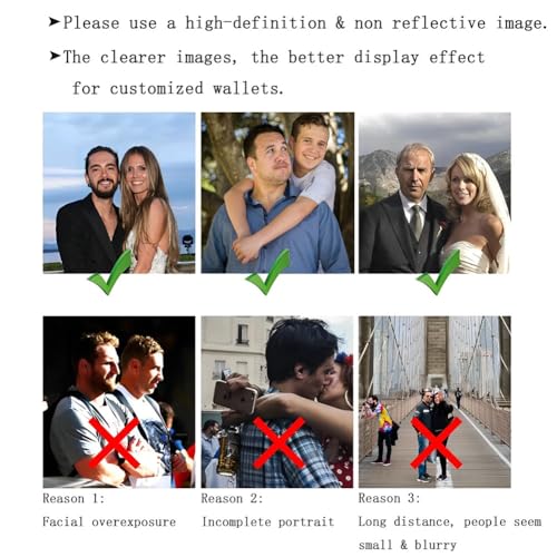 • MEN PERSONALIZED GIFT: 1. Click on "Customize Now" on the right side; 2. Upload a high-definition image; 3. Type initial & name or the text; 4. Add to Cart. Surprise loved ones with the incredible personalized photo wallets on Father's Day, Birthday, Valentine's Day, Christmas and Anniversary.
