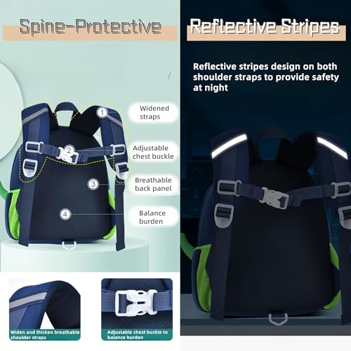 Dinosaur Boys Backpack for Toddler Kids, Anti-lost Bookbag for Toddler Boys Preschool Backpack, Suitable for Boys Ages 3-5, 02-Dark-blue+Green 5