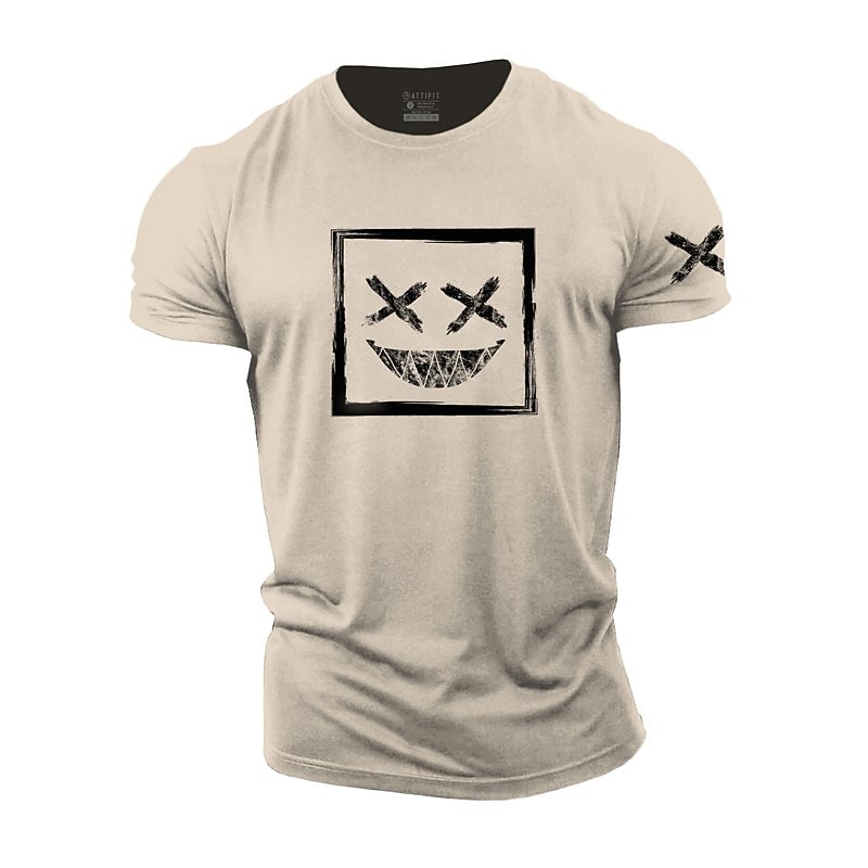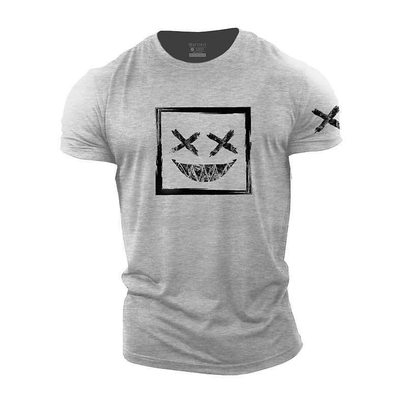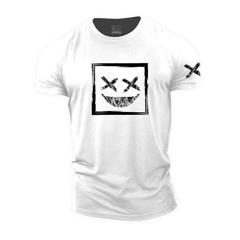 Men's T-Shirt | Short Sleeve Graphic | Edgy Distressed X-Eyes Grin Face with Sleeve Print 1