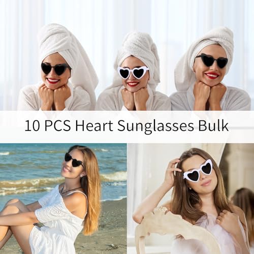 • Heart Sunglasses Pack:10 pack heart sunglasses in vintage cat eye design are an adorable and stylish way to add some flair to your outfit.Heart glasses bulk allows you to share them with friends and make everyone feel included in the fun.1psc white sunglasses and 9pcs black sunglasses you will receive