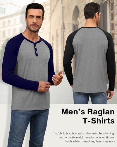 3 Pack Men's Long Sleeve Baseball Raglan T-Shirts S-3XL, Henley Tops Sport Athletic Jersey Tee Cotton Shirts 5