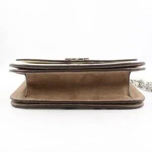 • Snake Embossed Leather Back Slip Pocket Magnetic Flap Closure Sliding Chain & Leather Shoulder Strap Silver-Tone Hardware 3 Main Compartments 1 Zip Pocket Inside Center Compartment Approximately 8.75" x 6.25" x 3" no dust bag