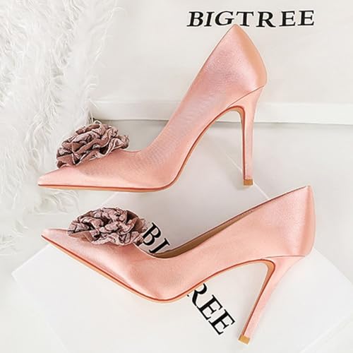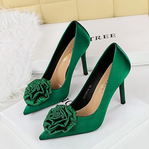 HOT ! Women's Satin Flower Stiletto Heel Pumps Closed Pointed Toe Slip-on Stiletto High Heel Business Office Dress Shoes Elegant Bridal Party Wedding Shoes