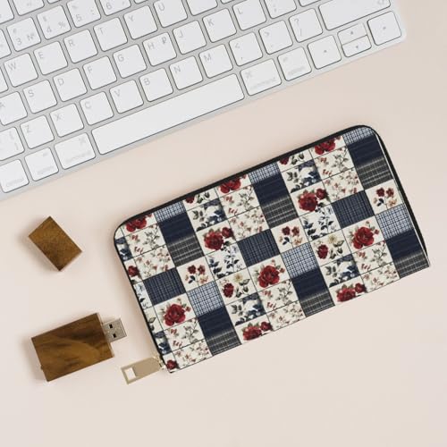 Retro Floral Plaid Print Wallet Women Men, Long PU Leather Wallets for Women, Cute Womens Travel Wallet Purse Pouch with Zipper Pocket 5