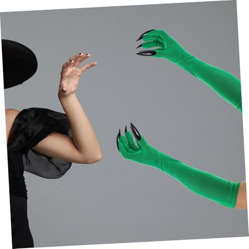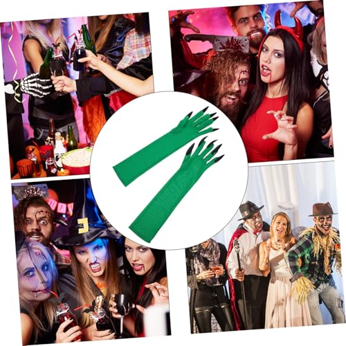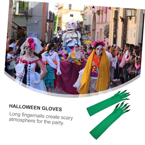 Beaupretty 1pair Halloween Nail Gloves with Scary Green Arm Sleeves for Cosplay and Costume Parties Comfortable Fit for Women 1